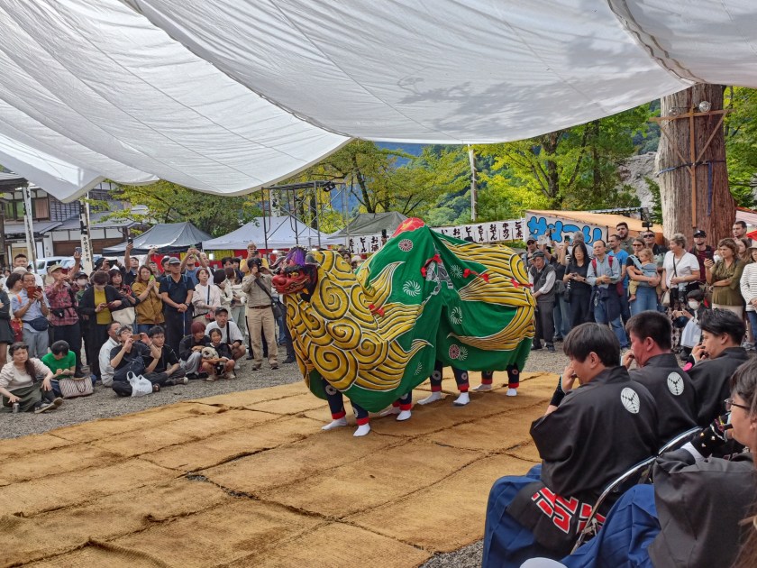 Participar en el festival Doburoku, vinculat a la collita i als cicles de la natura. Ens trobem entre la gent del poble, envoltats de tambors, flautes i vestits tradicionals. A l’escenari, nens i joves ballen i toquen instruments seguint ritmes antics, transmesos de generació en generació. Apareix el shishimai, la dansa del lleó, que s’executa per allunyar els mals esperits i portar bona fortuna. El poble de Shirakawago, entre cases gassho i muntanyes, celebra la gratitud per la collita i la convivència amb la natura. Els monjos beneeixen el sake doburoku, que després es reparteix entre tothom, una ofrena als déus i un brindis compartit amb la comunitat.