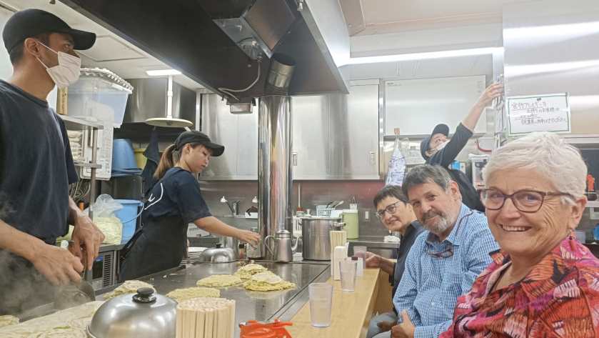 La trobada amb el Santi i l’Àngels, amics que fa anys que viuen al Japó, m’ha emocionat enmig de l’estació atapeïda de gent. Em porten a un local popular d’Hiroshima a menjar okonomiyaki, el seu plat més tradicional. Veiem com el cuinen sobre la planxa posant la massa de farina i ou, i apilant la col i els altres ingredients. Després es col·loca sobre un llit de fideus xinesos i es cuina fins que quedi cruixent. L’aroma i el sabor són reconfortants, senzills i deliciosos. Compartim records i converses sobre la vida lluny de Catalunya i l’adaptació dels seus fills. Un dinar que ha tingut gust de calidesa i d’amistat que perdura en el temps.