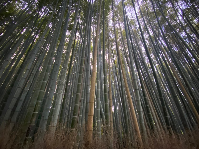 El bosc de bambú d’Arashiyama a la zona muntanyosa a l’oest de Kyoto, s’alça com una catedral verda. Els troncs esvelts s’enfilen cap al cel, rectes i silenciosos, deixant que la llum hi entri filtrada. Mentre camino, el vent fa que els bambús s’inclinin i es toquin entre ells.