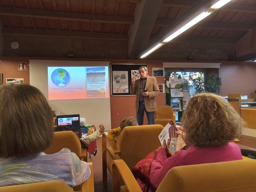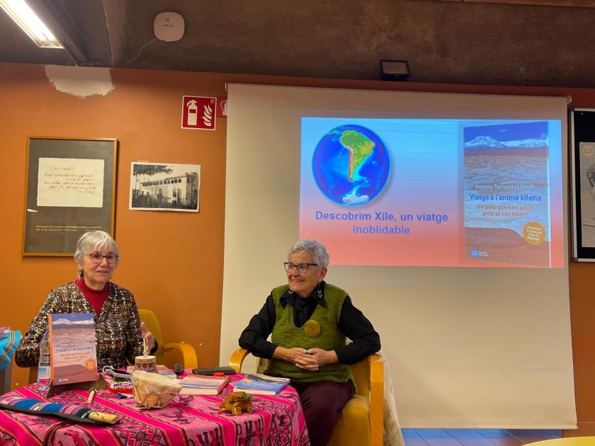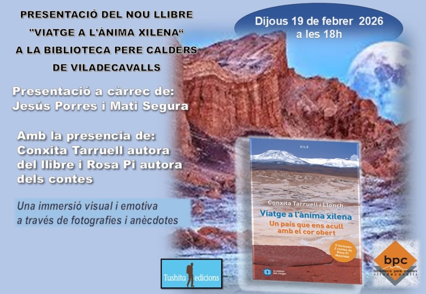 El dia 19 de febrer ha tingut lloc a la biblioteca Pere Calders de Viladecavalls la presentació del llibre Viatge a l’ànima xilena (2025) de l’autora Conxita Tarruell i Llonch en que s’inclouen dos contes de l’escriptora Rosa Pi Masvidal. En la introducció de l’acte s’ha ressaltat la fusió de literatura de viatges i contes en un únic llibre, fet únic en la literatura de viatges. El públic assistent ha gaudit de les explicacions de les autores, profusament il·lustrades amb fotografies i dibuixos. També han mostrat una exposició d’elements artesanals de Xile. L’acte ha finalitzat amb la signatura de llibres per les autores.