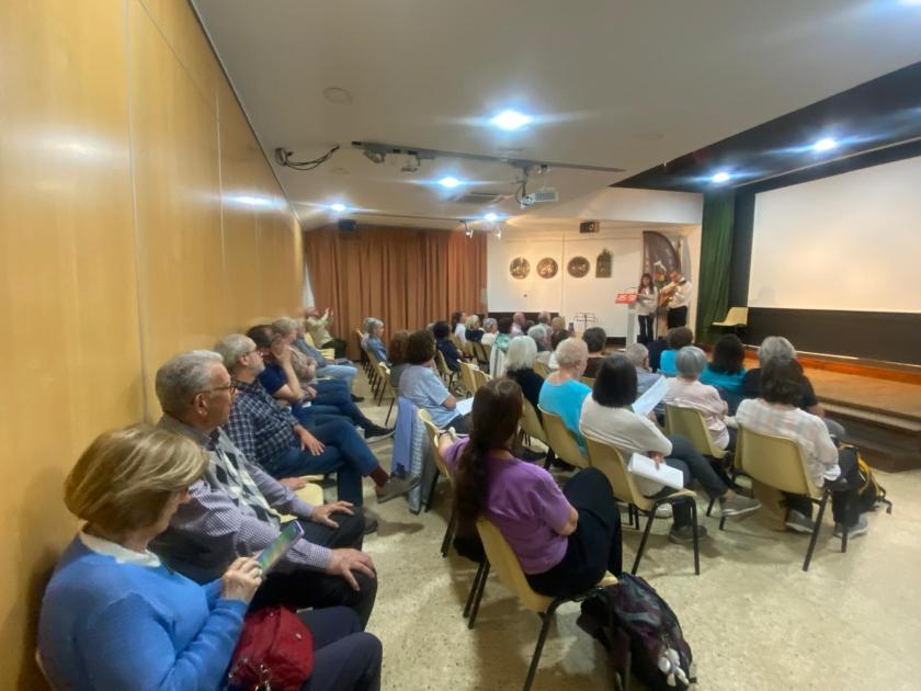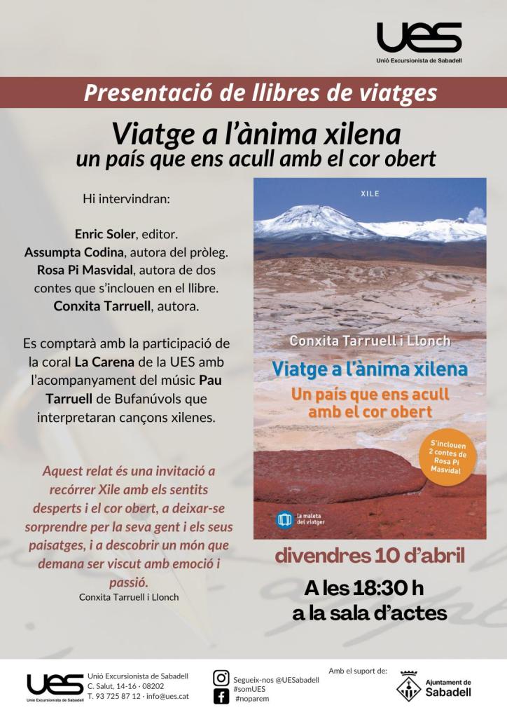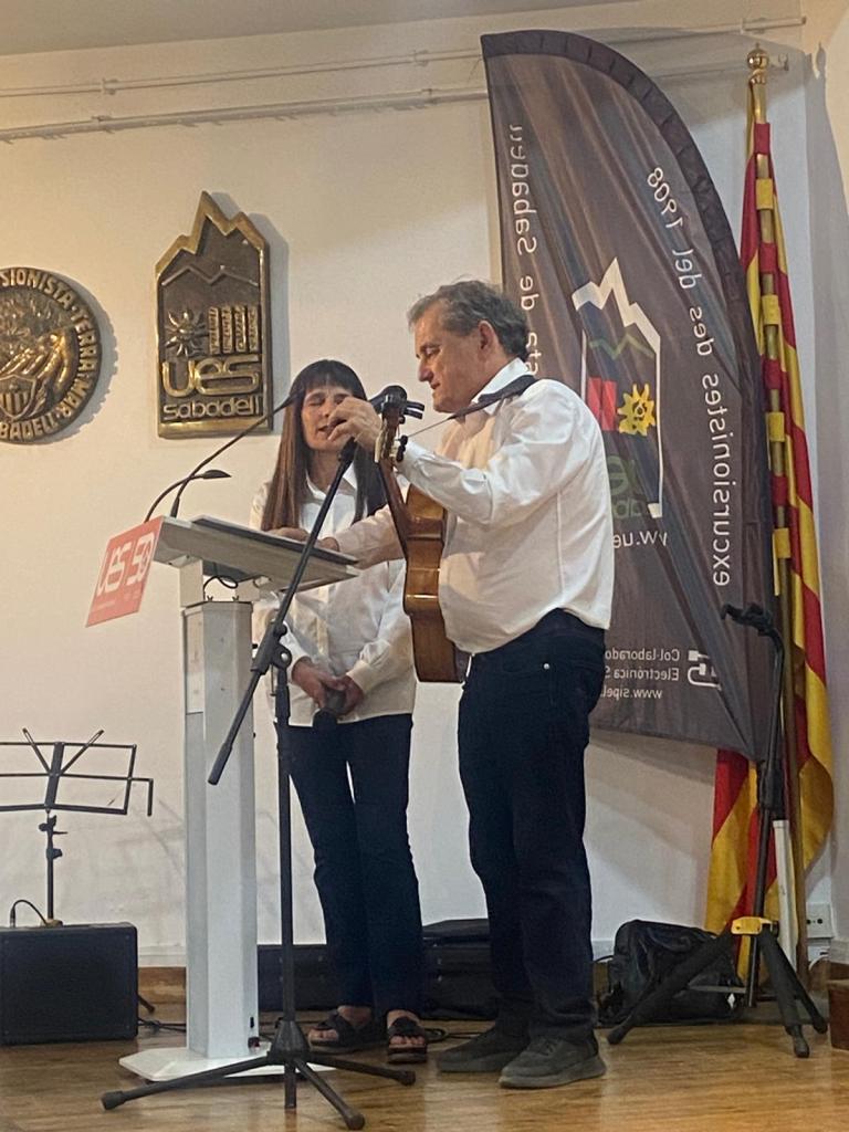 Aquest divendres 10 d’abril, la Unió Excursionista de Sabadell s’ha omplert d’emoció i música en una vetllada molt especial dedicada al llibre del viatge a Xile. Des del primer moment, l’ambient ha estat íntim i carregat de sensibilitat. La presentació del llibre s’ha entrellaçat amb la força de la música en directe, creant un diàleg viu entre paraula i sentiment. La coral La Carena ens ha regalat interpretacions com “Gracias a la vida” i “El pueblo unido jamás será vencido”, peces que han ressonat amb força dins de tots els assistents, despertant records i consciència col·lectiva. El tancament de l’acte també ha estat màgic amb els músics Pau Tarruell i Carmina Mas, de Bufanúvols, han emocionat el públic amb “Te recuerdo Amanda”, una cançó que ha omplert la sala com un sospir d’història i tendresa. Ha estat una experiència compartida, una finestra oberta a Xile a través de la seva música. Els assistents han connectat amb cada interpretació i han mostrat un interès sincer, convertint la vetllada en un moment únic. Una nit que encara ressona, on la música, la memòria i l’emoció han teixit un pont viu entre cultures i cors.